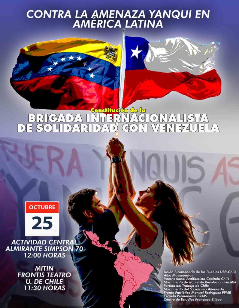 En Chile, también avanza la organización de las Brigadas Internacionalistas de Solidaridad con Venezuela, impulsadas por diversas fuerzas políticas y sociales, entre ellas la Unión Bicentenaria de los Pueblos (UBP-Chile), ALBA Movimientos, el Internacional Antifascista Capítulo Chile, el MIR, el Partido del Trabajo de Chile, el Movimiento del Socialismo Allendista, el Frente Patriótico Manuel Rodríguez, la Escuela Permanente PRAIS y el Centro de Estudios Francisco Bilbao. El objetivo es establecer canales concretos de apoyo y defensa de la Revolución Bolivariana.