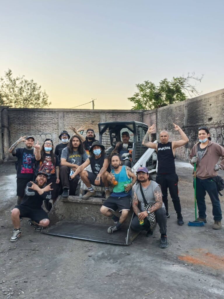 Según lo expuesto por la organización, el sitio ubicado en el sector de Pedro Aguirre Cerda con Carlos Valdovinos —abandonado por más de dos décadas y asociado a actividades delictuales— fue intervenido en diciembre de 2025 mediante una jornada autogestionada de limpieza y recuperación, financiada con recursos propios. El objetivo, señalan, fue habilitar un espacio comunitario orientado a la música y el deporte, particularmente ligado a la cultura skate.