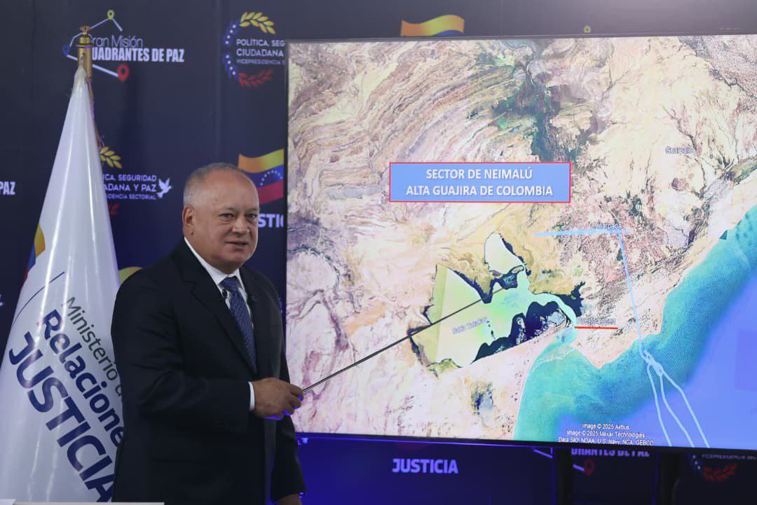 Cabello mostró trazas de GPS que, aseguró, ubican el punto de salida en territorio colombiano (sector Puerto López/Neymalu, Alta Guajira). Explicó rutas previas del narcotráfico y la “misma ruta de Gedeón”, enfatizando que Venezuela “cerró” corredores mediante patrullaje y trabajo de inteligencia. También comparó distancias y consumo de combustible para cuestionar relatos extranjeros sobre trayectos atribuidos a lanchas “venezolanas”.