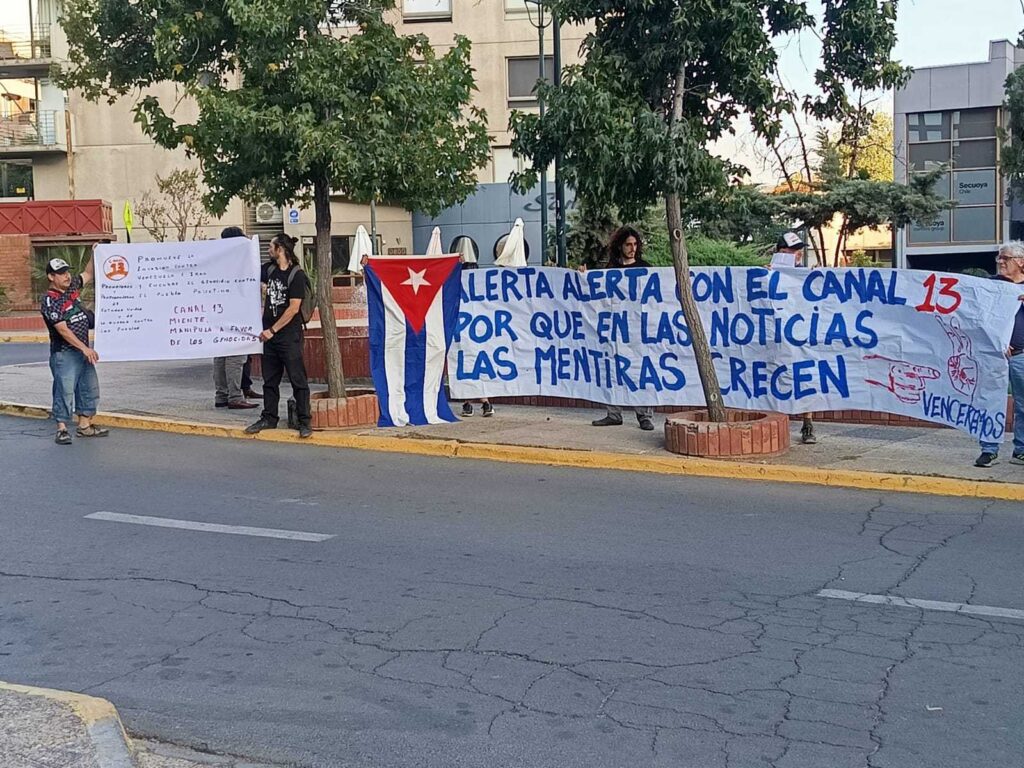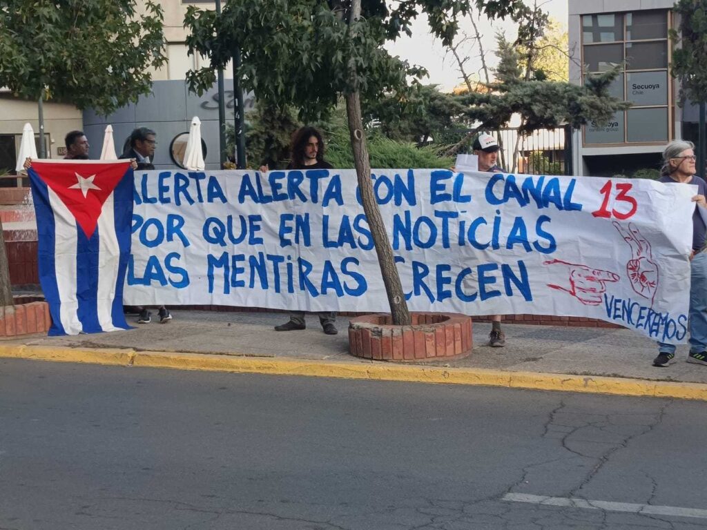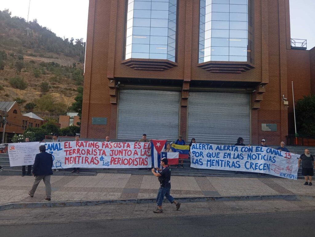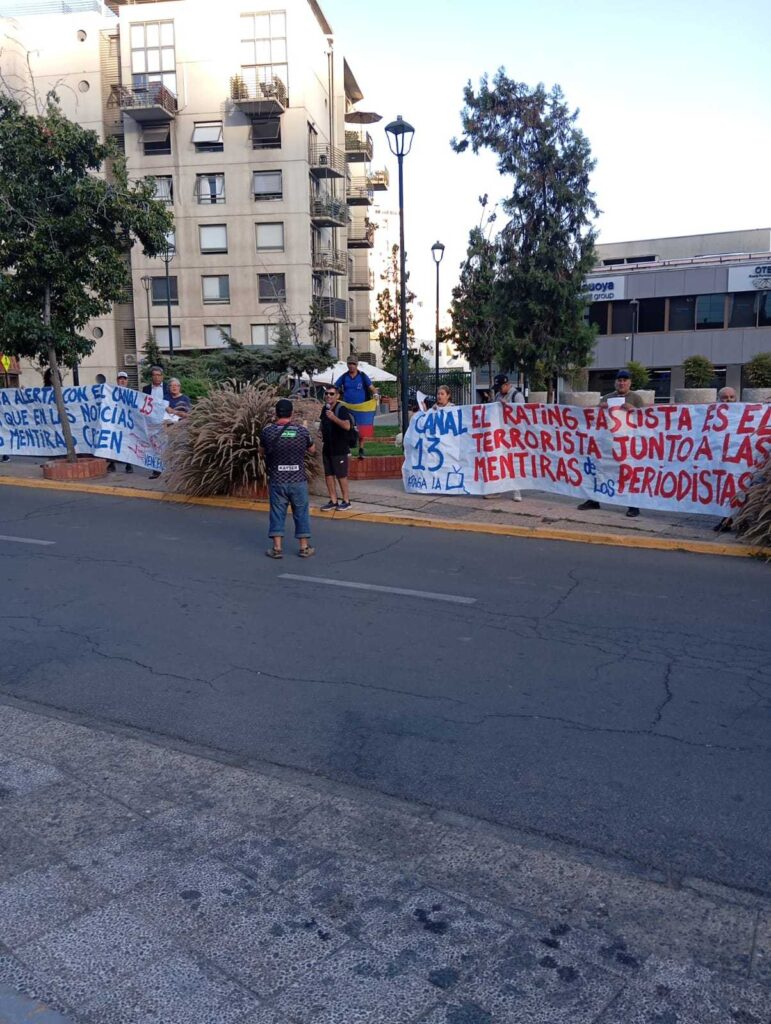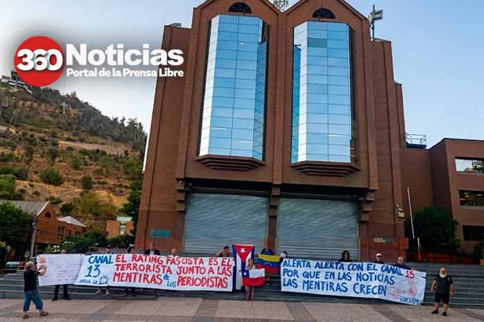 (360Noticias) Una manifestación se realizó frente a las dependencias de Canal 13 en Santiago de Chile, donde organizaciones denunciaron una “reiterada difusión de noticias falsas” por parte de la señal televisiva.