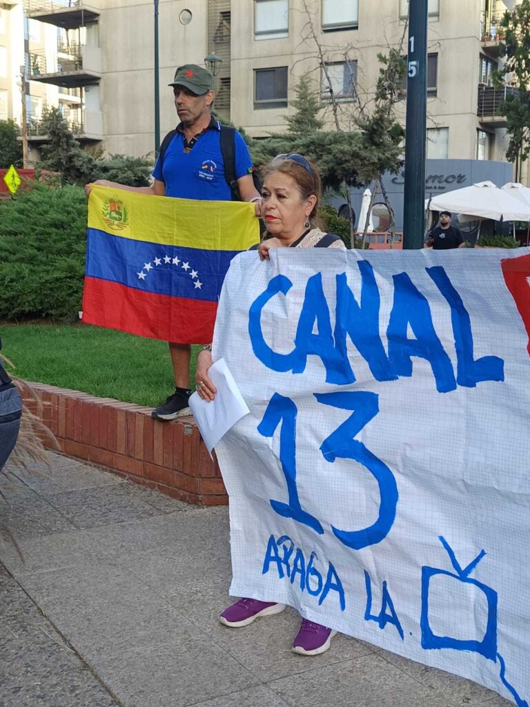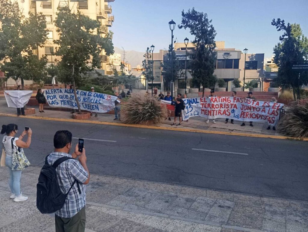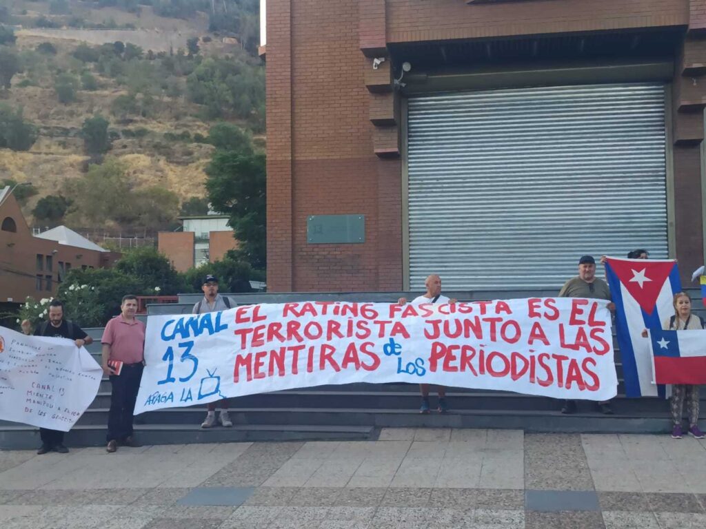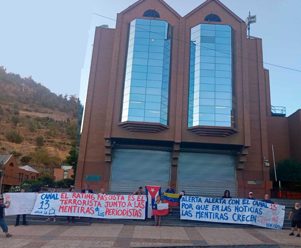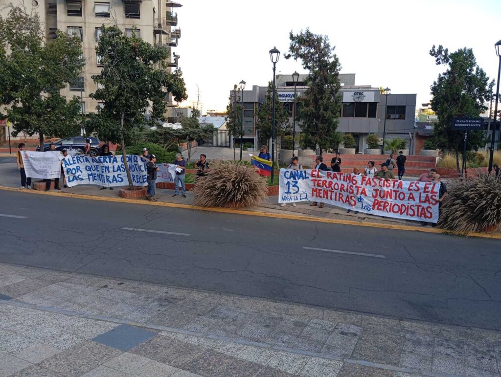 (360Noticias) Una manifestación se realizó frente a las dependencias de Canal 13 en Santiago de Chile, donde organizaciones denunciaron una “reiterada difusión de noticias falsas” por parte de la señal televisiva.