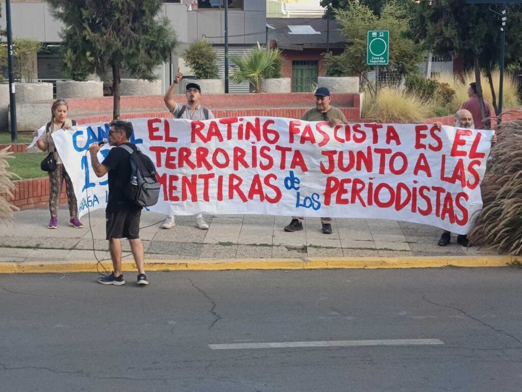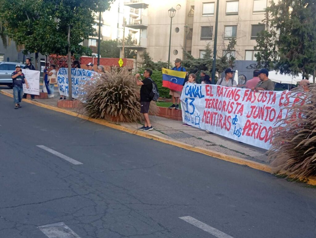 La protesta reunió aproximadamente a medio centenar de personas, quienes realizaron consignas contra el canal y contra el papel que cumplen ciertos medios en la construcción de la opinión pública.